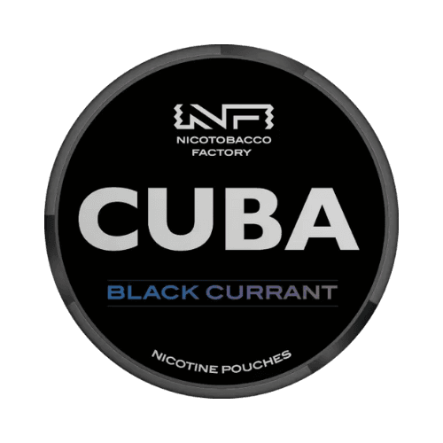 CUBA Black Black Currant est une puissante alternative à la nicotine sans tabac avec une saveur intense de baies de cassis. Chaque sachet mince contient 66 mg/g de nicotine, soit 43 mg de nicotine par sachet, ce qui en fait l'une des options les plus puissantes du marché.